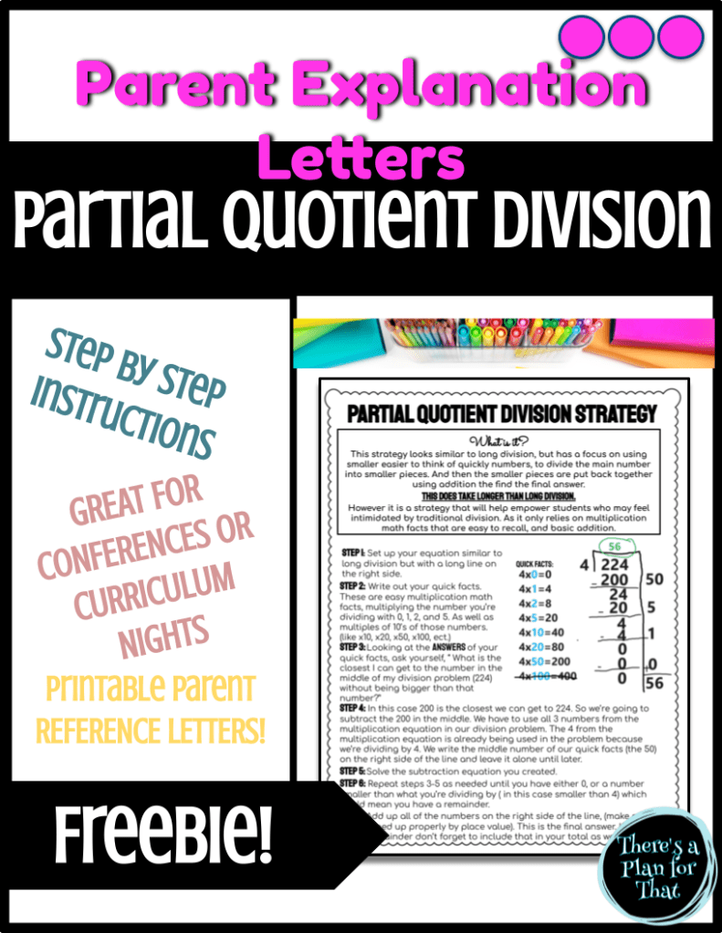 One of the fastest ways for your students to fail at this strategy is to learn partial quotient in school, but have parents showing them long division at home, and kids mixing up the two strategies and ending up with a mix of both and a mastery of none.