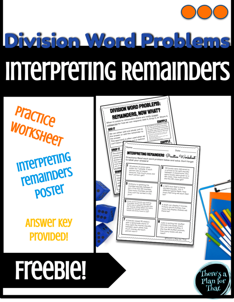 Today, I’m here to give you the tools to avoid my mistake — to provide your kids with the scaffolding they need to be successful at figuring out what to do with the remainder that they encounter in word problems.