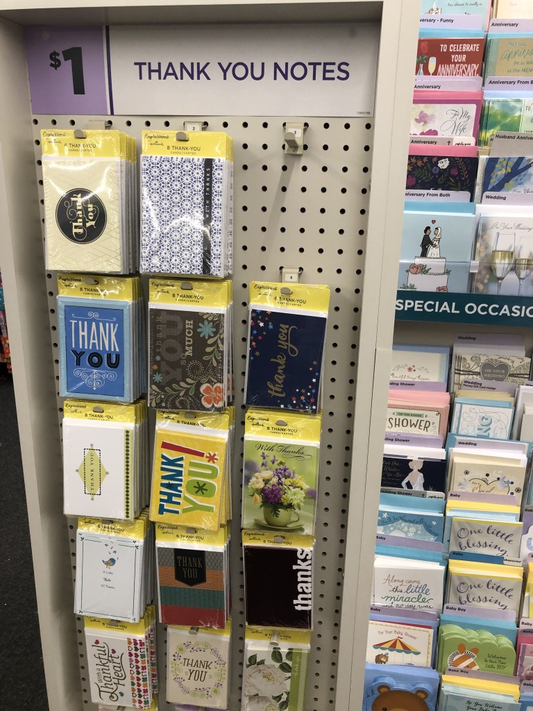 Nothing is sweeter than receiving a thank you note when someone has gone out of their way to do something kind for you. However, teacher life, especially new teacher life, doesn’t lend itself to the time it takes to go out and specially buy a thank you card. So even though the idea might be there, it tends to end before it’s begun because the cards aren’t easily accessible. If you keep them on hand, it can be easy to write a quick thank you message and pass them out to whoever needs one for the kindness bestowed on you. The Dollar Tree is a great cost-efficient place to stock up on your thank you cards, and you can keep them on your desk ready for quick grabbing when needed.