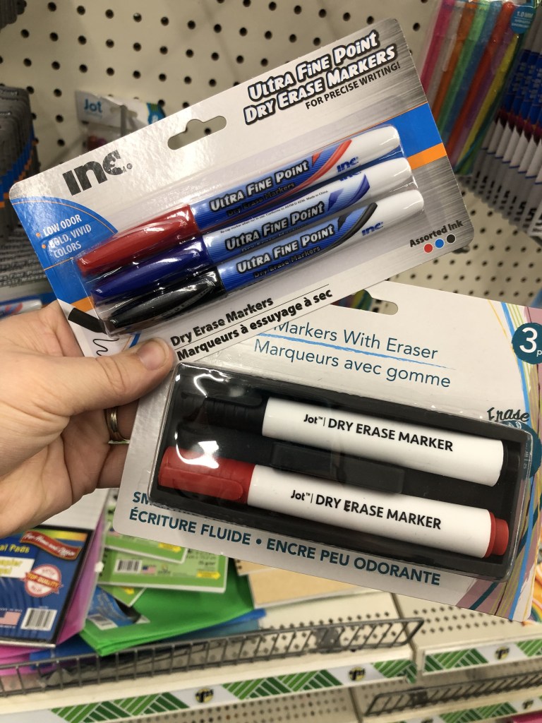 The off-brand whiteboard markers tend to dry out quickly and leave behind staining residue on the surfaces you are using as a whiteboard. I’m all for saving a dime, but in the case of whiteboard markers, I believe in just investing in the Expo brand markers and saving yourself the headache. I have noticed that you can purchase singular Expo markers at Dollar Tree recently. However, with the price tag of $1.25 per marker, you can find a better price shopping for a pack of Expo markers at a store like Walmart.
