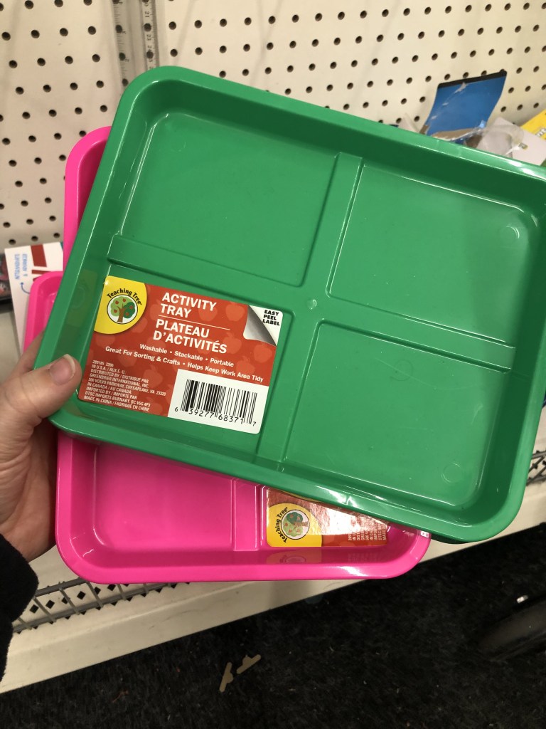 These can help prep math or science labs. For anything that has small pieces, you can use these trays to distribute the items the groups will need without worrying that the pieces will spill everywhere. This strategy of preparing ahead of time can make classroom management easier because there is less downtime when supplies are distributed. When you’re first getting started, any time you can reduce downtime, your day will flow easier.