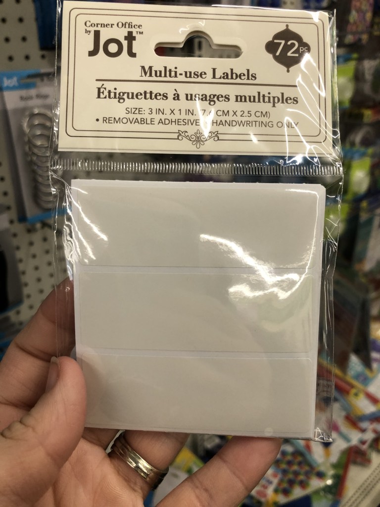 Labels are a must for keeping your classroom organized. However, they will quickly nickel and dime you if you buy expensive label packages from big-name office supply stores. The Dollar Tree generic labels are hardy and come in various sizes, perfect for your random needs. I also have found that if you can pick up the “hello, my name is” name tags, these can come in super handy for field trips as well as substitute teacher days as it allows everyone to know the student’s name quickly without struggling to memorize 20-30 student names on the spot.
