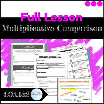 Teachers if you read all of this and still are walking away feeling irritated about multiplicative comparison being taught at the beginning of the year before multiplication, I have just the thing for you. Head to my tpt shop and check out my Multiplicative Comparison slideshow lesson, complete with formative assessment checkpoints, printable notes for students, and even a practice worksheet for independent practice.